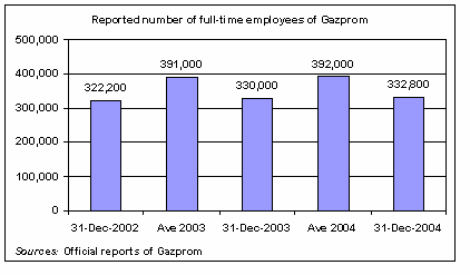 Figure 4-9: Number of Employees of Gazprom in