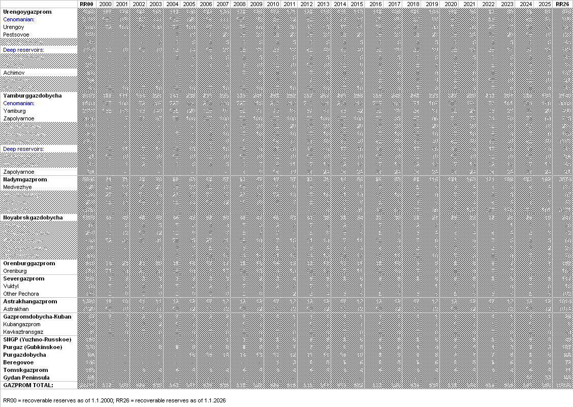 Figure 2-15: Old and New Production of Gazprom, bcm