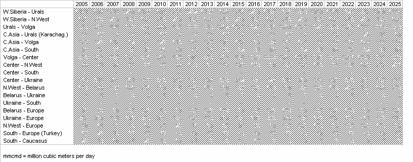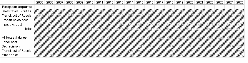 Table 1-6: Gazprom Export Price Assumptions for 2000-2025, USD/mcm