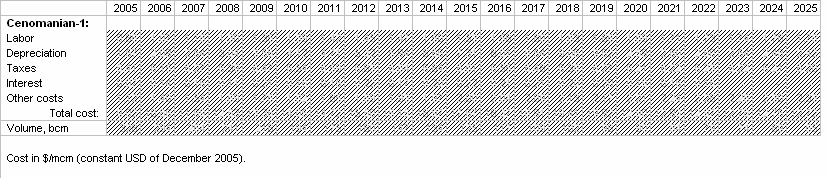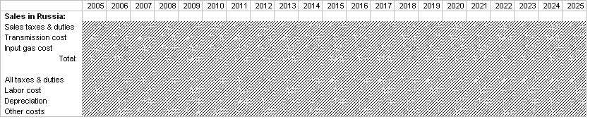 Table 1-2: Russian Gas Price Net of VAT, as of December 31, 2005