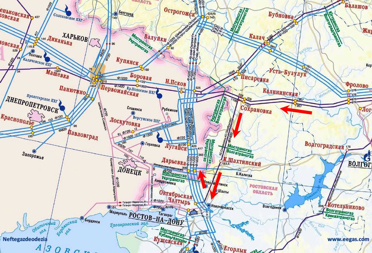 газопроводы Ставрополь-Москва и Краснодар-Серпухов пересекают украинскую границу