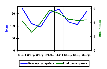 Газпрома по кварталам отражали сезонный характер добычи и поставок газа.
