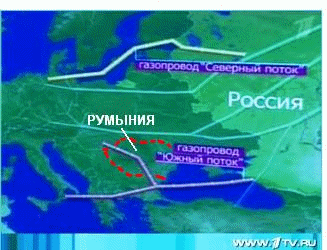 показывает маршрут газопровода "Южный поток", проходящий через Румынию.