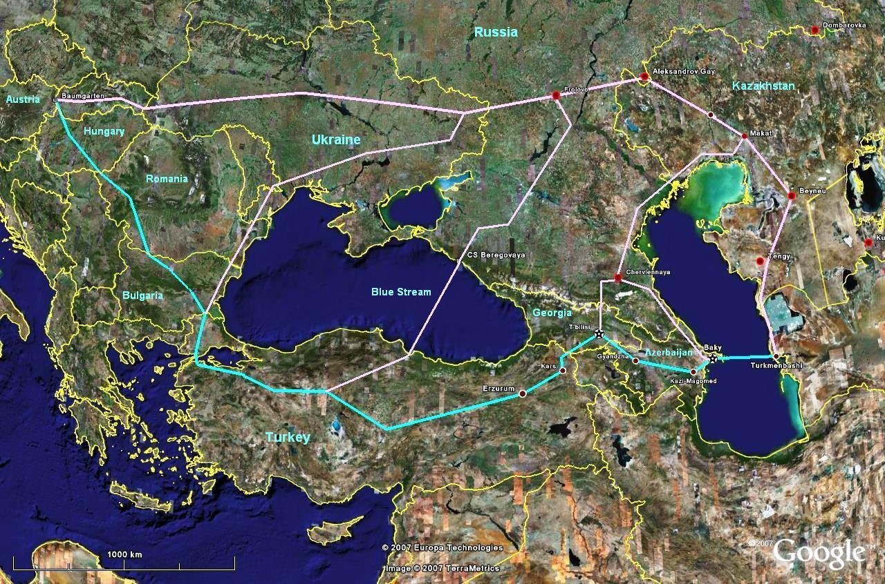 Туркменбаши до Болгарии, Греции, Румынии и Сербии по трассе Nabucco короче, чем