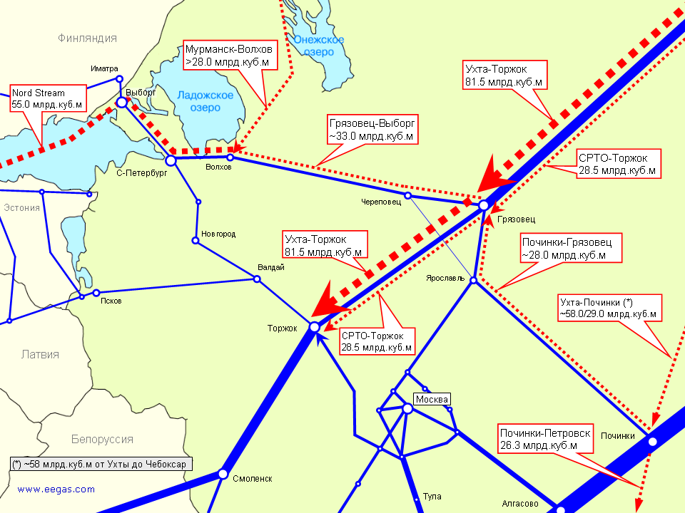 млрд.куб.м в год новых газопроводных мощностей от Ухты до Торжка, но не