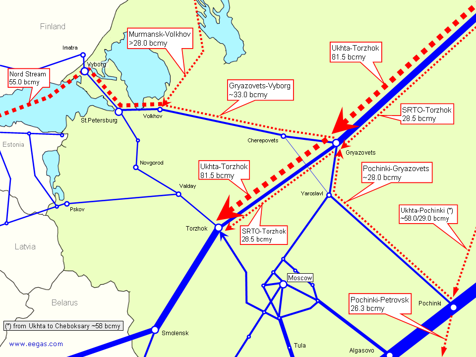 These pipelines would deliver gas from Torzhok to Moscow and Central Russia.