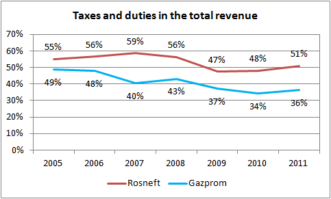 rate of RUR 237/mcm), the share of taxes and duties in the total