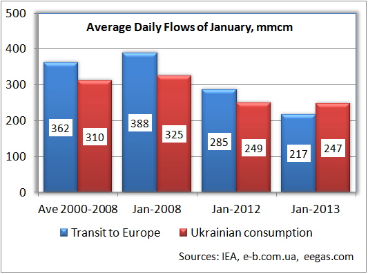 транзита газа в Европу компании "Нафтогаз Украины" требуется намного
