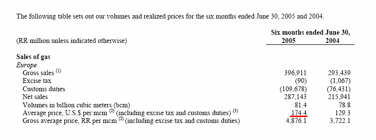 Gazprom report for Q2-2005, in the first half of 2005, Gazprom was