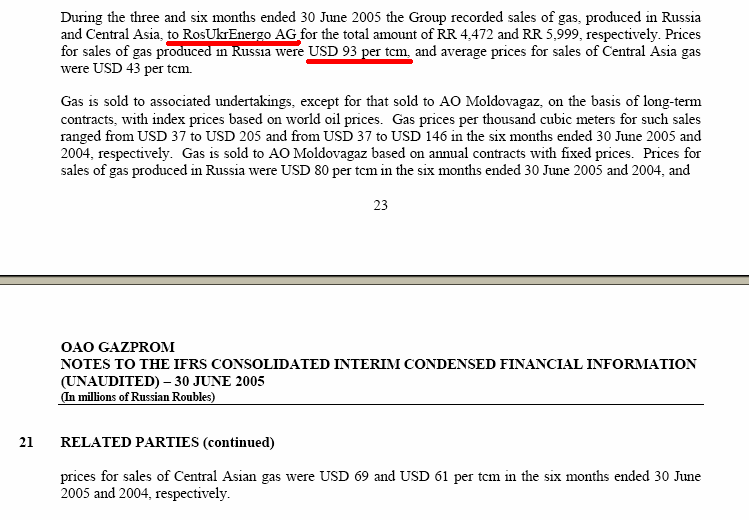 selling gas to RosUkrEnergo in Ukraine at $93/mcm, while the average